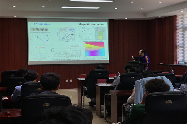 在特邀报告环节,翟昆老师以《Pressure effect on spin driven multiferroicity in a Y-type hexaferrite.》为主题,进行了英文专题交流汇报,翟昆老师的高水平学术报告引起了参会师生们的热切关注,同学们深深地感受到翟老师缜密的思维和严谨的科研态度。在讨论时间里,大家纷纷就相关问题进行提问,翟老师耐心地进行了详细解答,气氛十分热烈。