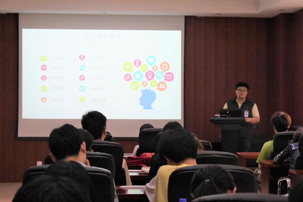 此次讲座旨在指导学生如何进行正确的应聘,减轻学生面试时的压力,让学生们能更好地展现自己的能力,增加面试成功的砝码,精准解决就业问题。