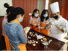 新老教工欢聚一堂,经过工作人员的培训后,大家动手做起了豆沙、枣泥、莲蓉、凤梨等馅的冰皮月饼。老师们看着自己的首创月饼,或而忍俊不禁,或而啧啧惊叹,欢声笑语的房间内弥漫着浓浓的情意。随后,大家相互品尝各自制作的月饼,分享中秋节的风俗习惯和月饼的由来,聊着新教工的工作和生活,畅享着亚博体育