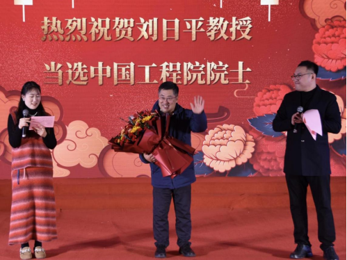 党委书记王国伟及学生代表为现场观众献上了精彩的歌曲表演,并获得热烈的掌声;“抢凳子”、“你喂我吃”、“捡金豆”这些创意满满的趣味游戏,更是将现场气氛推向了高潮。参与活动的老师们抛却了平日工作的严肃,兴致高昂地投入到游戏中,从中收获了志趣与快乐。在特别致敬环节中,由教职工代表向刘日平院士送上鲜花,向刘日平教授当选中国工程院院士再次表示祝贺。
