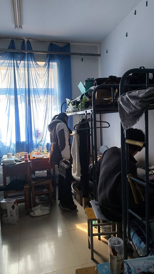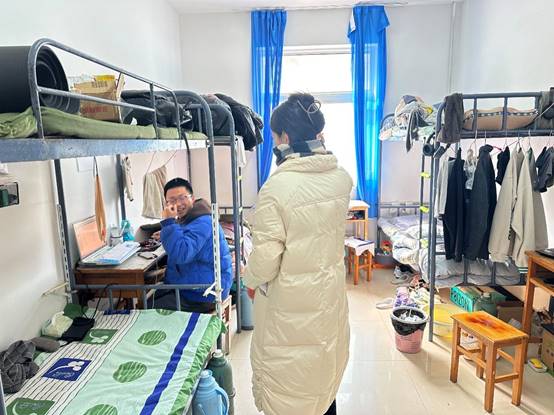 在巡查走访过程中,师生关心在寝室同学的生活,了解同学们的返校情况、学习规划,叮嘱他们注意寝室用电安全,保持寝室卫生,注意保管好贵重物品及证件,并嘱咐同学们要调整好作息,以积极向上的姿态投入到新学期的学习、工作和生活中。