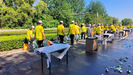 到达补给地点后,志愿者们各司其职,快速投入志愿服务准备中,将温暖和关怀化为支持运动员的力量,为国内外的一万七千余名选手提供坚实保障。