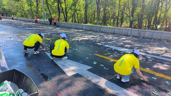 随着最后一名参赛运动员跑过,本次服务接近尾声,志愿者们工作热情不褪,搬运剩余物资,清理位点垃圾,高效完成撤场任务,弘扬了“奉献、友爱、互助、进步”的志愿者精神。