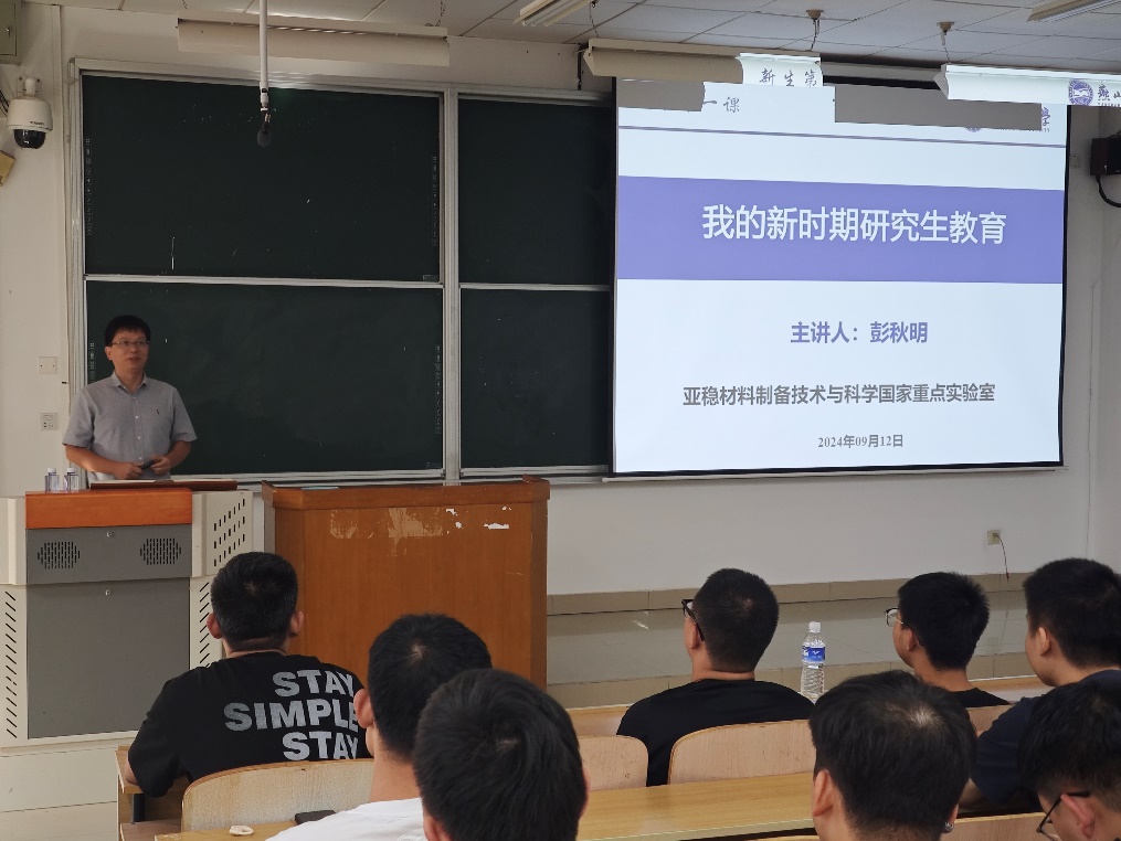 于9月12日下午在西区第二教学楼108室举办2024级研究生“新生第一课”专题讲座。本次讲座由亚稳材料制备技术与科学国家重点实验室常务副主任彭秋明教授主讲,亚博体育