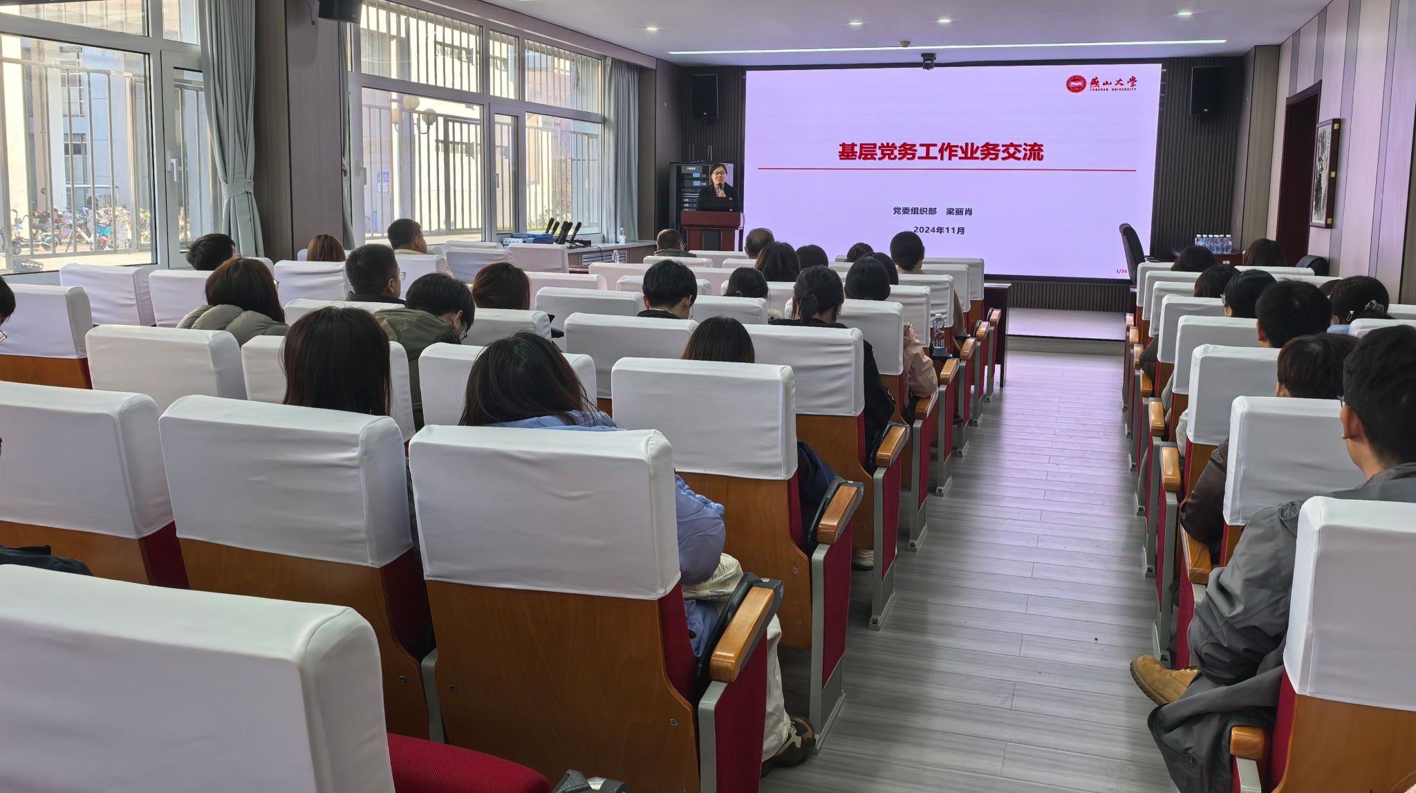 梁丽肖系统分析了当前党建工作存在的问题,重点解读了基层党组织的职能定位、基层党组织的主要职责。随后,她绕发展党员工作、党员日常教育管理、不合格党员处置、党费收缴、管理和使用工作、党支部组织生活、党支部工作手册使用、党员领导干部如何联系师生党支部7个方面,进行了详细讲解。对党支部书记在实际工作中遇到的重点、难点进行精准指导,并对日常检查中基层党组织普遍存在的问题进行统一答疑。