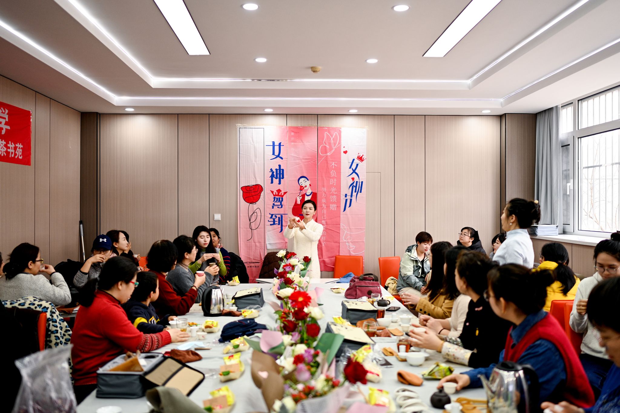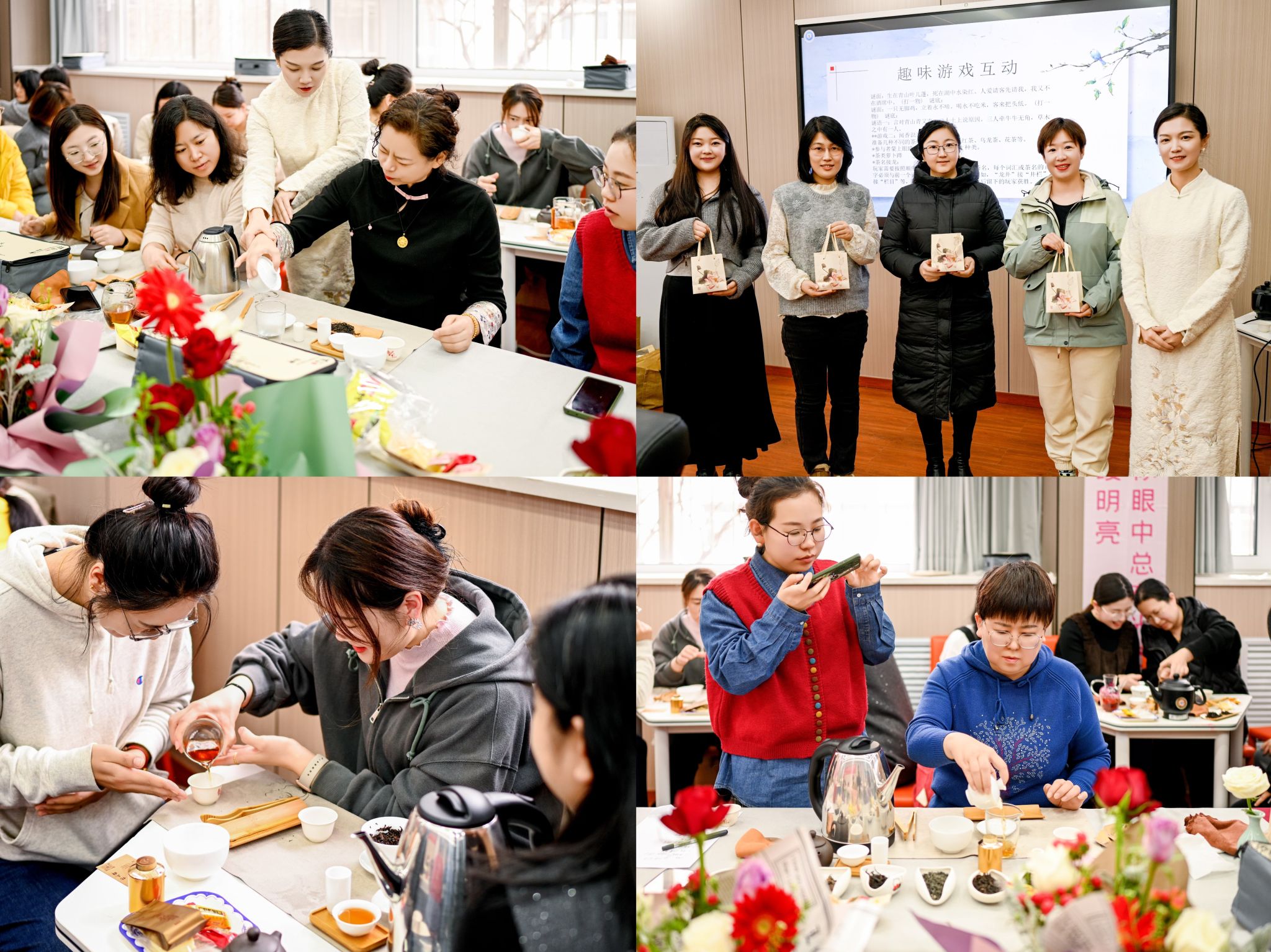 女教职工们围坐在一起,搭配着精致可口的茶点,轻抿香茗,畅谈生活与工作,欢声笑语回荡在茶香中。大家纷纷表示这是一次难忘、静心的美好时光。