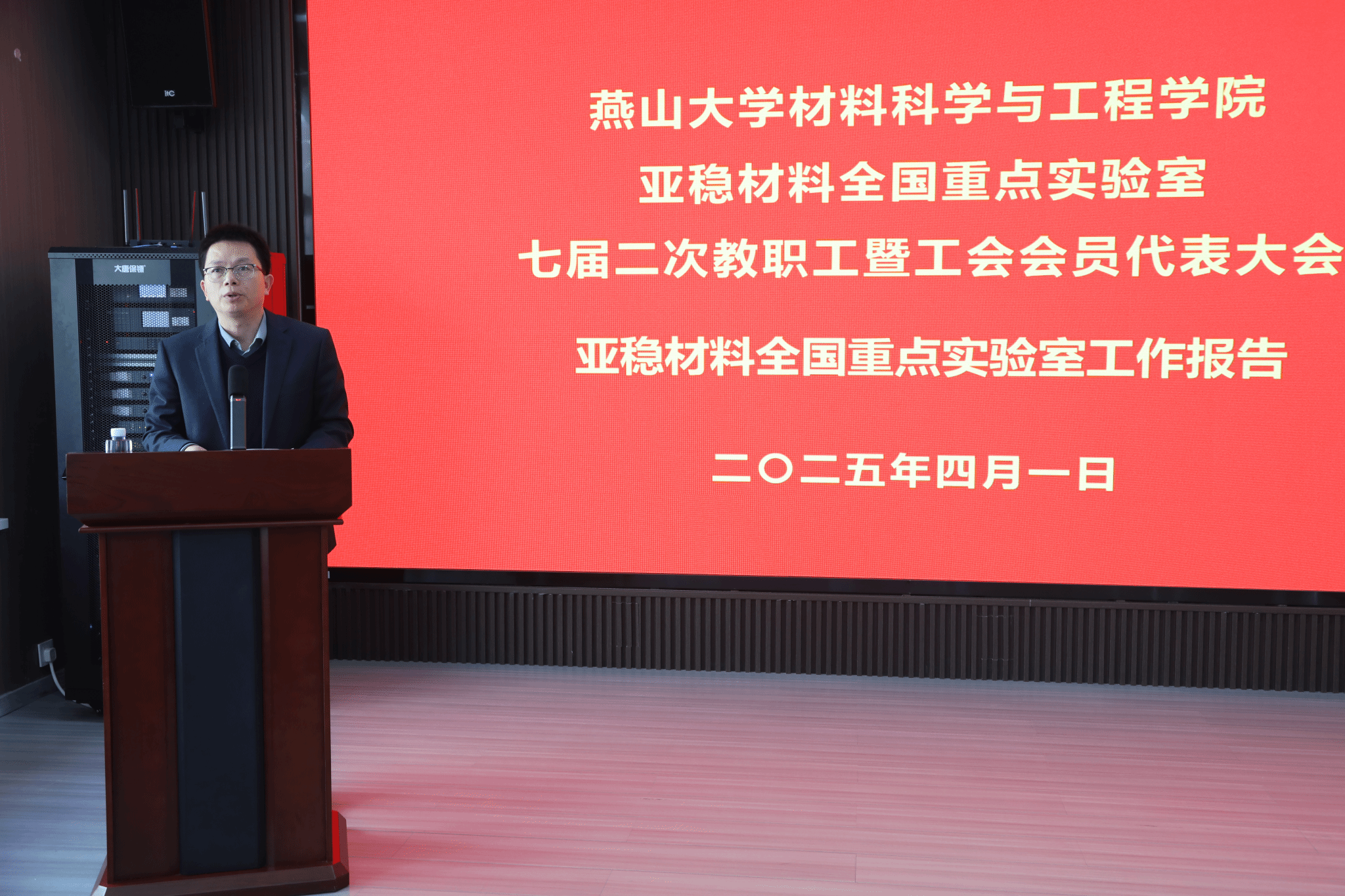 亚稳材料全国重点实验室主任彭秋明作题为“奋楫扬帆 精进笃行 为推动亚稳材料全国重点实验室跨越发展铸就坚实根基”的工作报告,报告从实现重组、科研攻坚、平台建设、平安全重、人才引培、国际交流等方面回顾和总结了2024年全重实验室各项工作所取得的成绩,客观全面地分析了工作中存在的困难和问题,同时认真梳理了2025年全重实验室的重点目标。他号召全体教职工锐意进取,勇攀高峰,不断提升科研水平和创新能力,为推动亚稳全重实验室跨越发展而不懈奋斗。