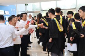 典礼尾声,毕业生代表向恩师敬献鲜花,全体合影,师生情谊在掌声与笑靥中升华。特别设计的“毕业可乐”派送环节,为离场学子送上甜蜜祝福,既象征学子求学时光的甘美回味,亦寄托着“聚散有时,未来可期”的深切祝福,为毕业生踏上新征程奏响温暖的序章。