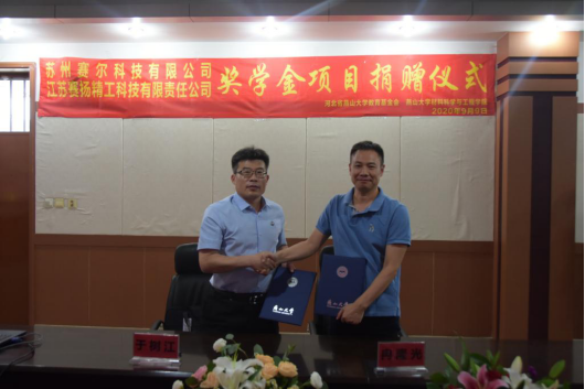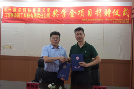 9月9日下午4:30,江苏赛扬精工科技有限责任公司、苏州赛尔科技有限公司奖学金项目捐赠仪式于材料A馆325室举行。亚博体育