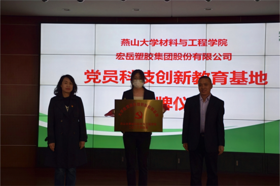 与宏岳塑胶集团股份有限公司共建“大学生党员科技创新教育基地”揭牌仪式在宏岳塑胶集团股份有限公司举行。宏岳集团总工程师祖国富、董事办主任刘燕、工艺工程师孙忠学,亚博体育
