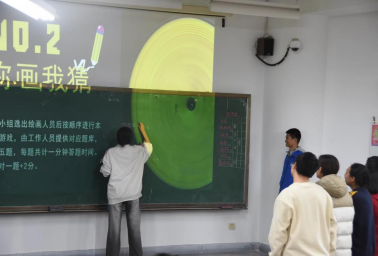复赛环节分为三轮,更加丰富多彩。在“听歌识曲”环节,一首首旋律激昂、情感深沉的红歌被依次播放出来,不仅唤起了同学们对往昔岁月的深情回忆,更激发了他们参与答题的热情与积极性。在“你画我猜”环节,比赛现场更是充满了欢声笑语与创意碰撞。每组参赛队伍都派出了一名“灵魂画手”,他们需要在限定时间内,通过简练的线条与生动的色彩,将抽到的歌曲关键词或歌名以画作的形式呈现出来,供队友们猜测。