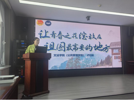 卢衍航宣讲的主题是“让青春之花绽放在祖国最需要的地方”,为同学们分享乡村支教的经历。“乘着渤海之滨奔腾的浪花,奔向山高水阔的远方。是梦想告诉我们,人的一生要做一件一辈子纪念的事情。把小我融入大我,把青春献给祖国,到西部去,到基层去,到祖国最需要的地方去。”她曾这样提到。青春在服务奉献而深刻,在拥抱未来中而长远。新时代青年选择做有情怀、有担当、有温度的人,扎根基层、拥抱未来,和自己热烈的青春做个约定。