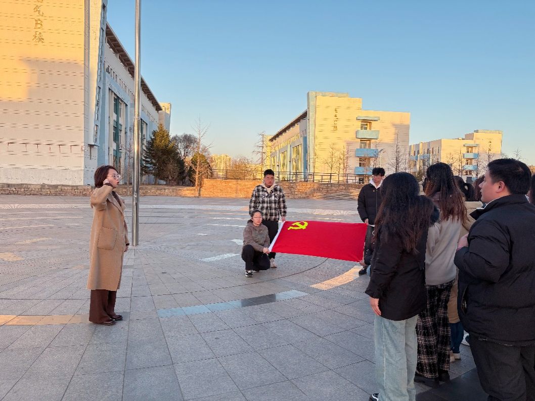 国旗护卫队昂首挺胸,迈着铿锵有力的步伐,护卫着鲜艳的五星红旗走向旗杆。伴随着中华人民共和国国歌,鲜艳的五星红旗在空中冉冉升起。现场全体党员深情地向国旗行注目礼,表达对党和祖国的忠诚与热爱。“我志愿加入中国共产党,拥护党的纲领….随时准备为党和人民牺牲一切,永不叛党。”在王妍的领誓下,全体新党员整齐列队,面向鲜红的党旗,佩戴党员党徽,握紧右拳,语气坚定、声音激昂地进行了庄严的宣誓。