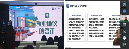 副书记王亦晨、博导王青峰教授、毕业班辅导员冯晶与用人单位现场交流