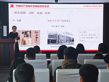 包巍以时间为轴,系统梳理了中国共产党海外党建的百年历程。在早期革命阶段,蔡和森、周恩来等留法青年在勤工俭学中接触马克思主义,并成立旅欧中国少年共产党,通过创办《少年》《赤光》等刊物,传播革命思想,为国内革命事业培养和输送了大批骨干力量。在抗日战争时期,海外党组织积极动员华侨华人捐款捐物,组建医疗队回国支援抗战。包巍以陈嘉庚先生组织南洋华侨筹赈祖国难民总会为例,展现了海外党建在凝聚爱国力量、共御外侮中的重要作用。在总结海外建党百年经验时,包巍强调,海外党建始终与国家发展战略紧密相连,是党联系海外华侨华人、国际友好力量的重要纽带。新时代海外党建工作面临新机遇与新挑战,党员同志们应积极探索创新工作方式,加强与海外青年群体的联系,增强党组织的凝聚力和影响力。