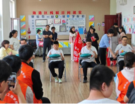 组织青年志愿者与社会爱心人士一道前往海港区残联开展“多彩夏日 共筑爱之乐章”儿童节公益活动。通过沉浸式艺术疗愈体验,为自闭症儿童搭建起一座通往外界的情感桥梁,以实际行动践行“平等、参与、共享”的现代文明社会理念。