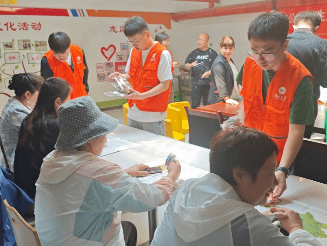 活动现场,同学们为社区居民发放端午节香囊材料包,耐心讲解材料的使用和制作步骤,和居民们共同DIY制作香囊。他们热心地为年龄大的老人们“穿针引线”,大家精心挑选艾草等天然香料,认真细致地缝制,将传统节日元素与自己的创想巧妙融入到手工设计中,将端午节的祝福融于香囊之中。同学们围坐在老人身边,共叙家常,气氛温馨融洽。毕业生党员还为社区居民分发垃圾分类宣传单,讲解垃圾分类重要意义,让居民们深刻认识到垃圾分类对环境保护和资源再利用的重要性。