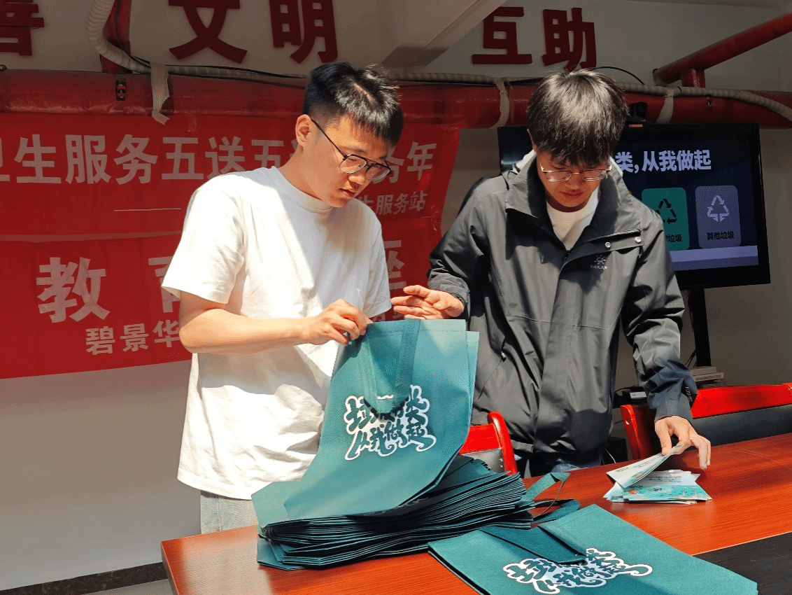 毕业生党员整理垃圾分类宣传材料