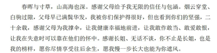 致谢深处,总是藏着对家人的眷恋。“父母满鬓华发”的心疼,“不敢打电话却牵挂”的愧疚,皆在字间流淌。家人的支持是最坚实的后盾,电话里的叮嘱、深夜的倾听,化作勇闯天涯的底气,让追梦路始终温暖。