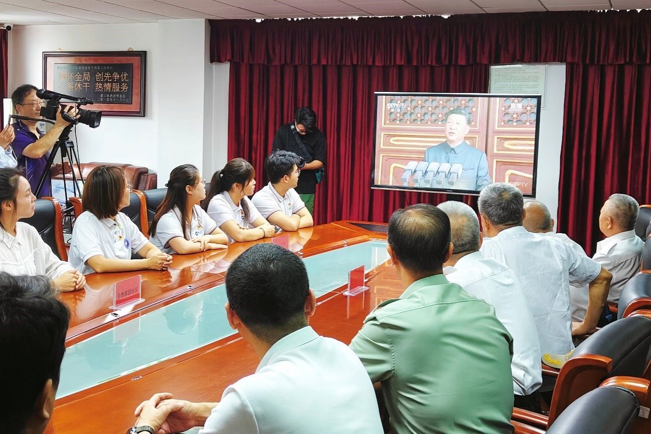 亚稳材料国家重点实验室研究生第二党支部在副书记王妍带领下,联合自然家园社区党委,走进秦皇岛市军队离休退休干部第三休养所,开展了以“烽火映初心 共筑强国梦”为主题的特色纪念活动。通过艺术捐赠、历史对话与阅兵观礼等形式,与干休所老干部共忆峥嵘岁月,凝聚奋进力量。