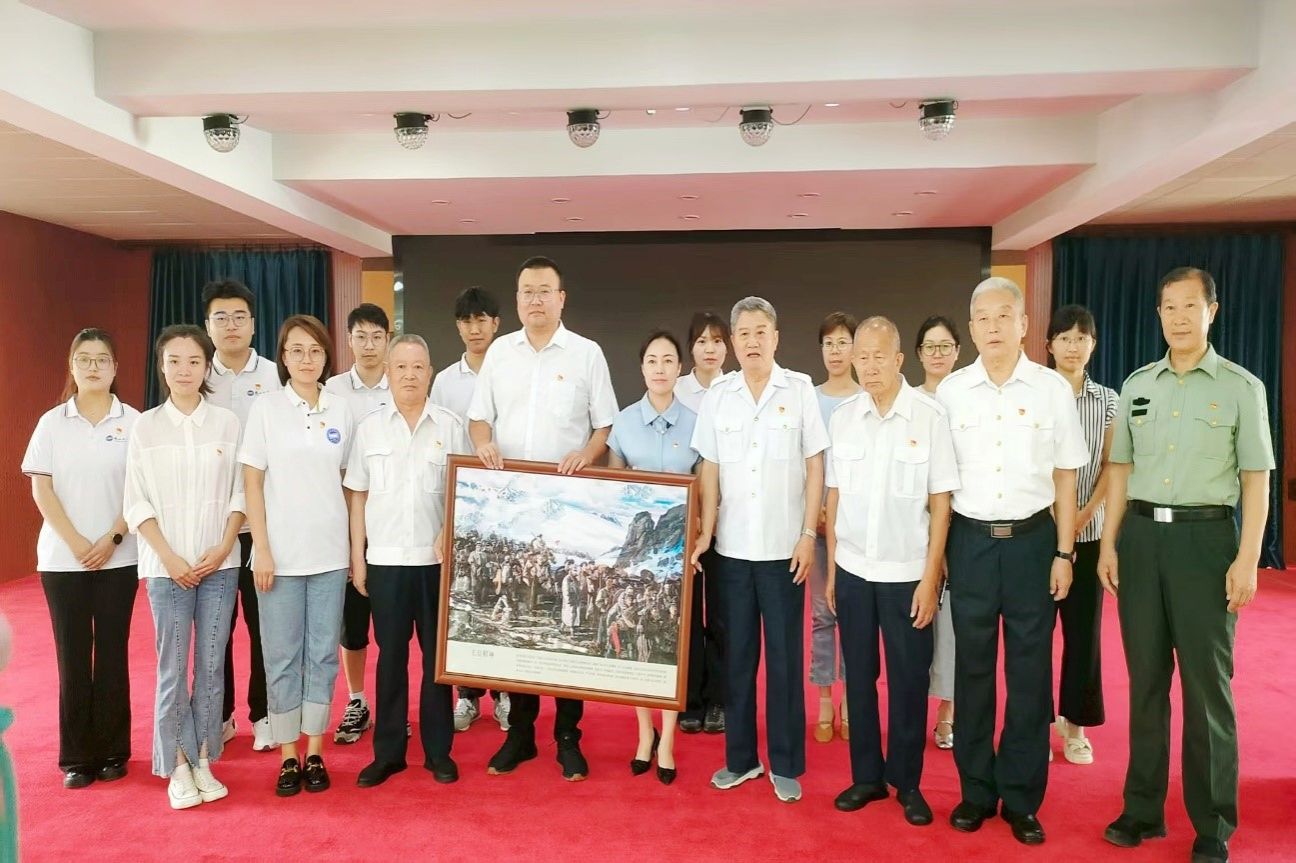 活动伊始,党支部向干休所捐赠了油画作品《长征精神》。画作以红军翻越雪山的壮丽场景为背景,生动展现了革命先辈不畏艰险、勇往直前的精神风貌。支部党员申田田在捐赠仪式上动情表示:“长征精神是中华民族的宝贵财富,作为新时代青年,我们不仅要铭记历史,更要以实际行动传承红色基因,将个人理想融入国家发展大局,为科技自立自强贡献青春力量。”干休所负责人代表全体老干部接受捐赠,并感谢高校与社区的深情厚谊,强调“这幅画作将永久陈列于休养所,成为激励后人奋进的精神坐标”。
