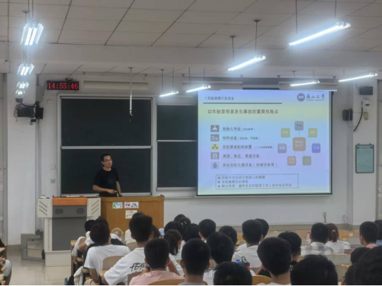 9月5日,实验室乔琪老师面向新生开展实验室安全专题教育,通过案例讲解与规范示范,强化学生安全意识。乔琪老师着重提醒,进入实验室须克制盲目好奇,严格遵循操作流程,尤其警惕爆炸等高风险隐患。现场披露的多起真实事故案例,为新生敲响安全警钟。此次教育使新生深刻认识到,实验室安全是科研工作的“生命线”,唯有筑牢安全底线,才能保障研究工作稳步推进。