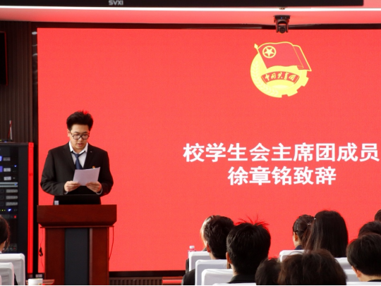 下午14:30,大会在庄严的国歌声中拉开帷幕。徐章铭代表校学生会致辞,对大会的召开表示热烈祝贺,并希望亚博体育