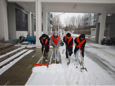 在校园主干道与楼宇周边,志愿者迎寒而上,挥锹铲雪、分工协作。铁锹破雪的节奏声与呼出的热气交织,在凛冽中奏响一曲温暖有力的劳动交响乐,迅速打通师生通行“暖心路”。