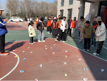 活动最后是欢乐的“趣味套圈”游戏。孩子们在鼓励下有序排队,手持套圈,瞄准目标,每一次成功的投掷都伴随着欢快的笑声和热烈的掌声。志愿者们及时送上奖品与鼓励,让孩子们在收获礼物的同时,更收获了满满的成就感与快乐。